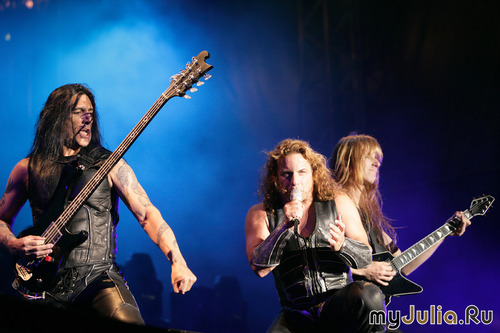 Группа, которая меня заставляет бороться!!!! Manowar - родом из США (удивительно, что там появилась такая тяжелая группа). Manowar - это душа культуры Heavy Metal. За 30 лет существования группы на их песнях выросло новое поколение людей, сильных и крепких. Manowar говорит просто и открыто о великом и малом, о том, что все мы имеем глубоко в сердце, напоминая нам не стесняться этого. Они дали людям знать, что в этом мире жестокости, несправедливости и цинизма существует остров, на котором не действуют законы государств, но действуют законы Истинного Метала. И имя этому острову - "Manowar". Manowar - последние официальные обладатели рекорда Гиннесса как «самая громкая группа». Два специалиста усердно измеряли и фиксировали звук, встряхивающий город. "Manowar" играл в живую, сотрясая все и вся 129,5 децибелами, выдаваемыми 10 тоннами аппаратуры. Manowar образовалась в апреле 1980 года после знакомства Росса «Босса» Фридмена и Джоуи ДиМайо. Вокалистом группы стал школьный приятель ДиМайо Эрик Адамс, а барабанщиком, после непродолжительных прослушиваний, — Карл Кеннеди. Имидж группы – викинги, средневековье, честь, сила и храбрость, а также «смерть ложным металлистам». Название группы по объяснению ДиМайо означает "war" - война, потому что вся жизнь война и "man" - человек, человечество. Ну, в общем, Manowar - воин. Их эмблема - безликий воин, его разорванные цепи символизирует свободу, он специально сделан без лица так как им может быть кто угодно, он не идет за кем-то он сам ведет. Особое приветствие фанатов Manowar Особое приветствие фанатов Manowar — руки подняты над головой, одна рука сжата в кулак, вторая охватывает запястье первой. Фаны для них братья и сестры. А еще так по-английски назывался тип самых крупных кораблей парусного флота. В начале карьеры они выглядели так А сейчас так Второй свой контракт группа подписала кровью - в доказательство того, что они никогда не изменят однажды выбранному стилю — хеви-металу — и будут верны своим обещаниям до конца. «Мы отдадим кровь за хеви метал» - говорил Джоуи ДиМайо. В 1983 году Manowar выпустили второй альбом «Into Glory Ride» и свой первый клип (на песню «Gloves of Metal»). Этот альбом рассматривают как доказательство того, что их музыка и есть настоящий метал. Все песни на этом диске являются классическими композициями в стиле хеви-метал, но с не совсем обычной тематикой. После выпуска альбома группа отправилась в европейское и японское турне. Именно в это время у группы появилось большое количество поклонников. 30 июня 2007 года, на концерте Manowar в болгарском городе Каварна он спел гимн Болгарии для болгарских фанов. Исполнение гимна было записано для нового DVD группы. В 2009 году Manowar предприняли достаточно рискованный эксперимент, названный «одиссеей Эрика в мире вокала» — баллада «Father» была записана на 16 языках, начиная с родного для певца английского, и более-менее привычных немецкого и итальянского до экзотических японского, венгерского, румынского. В конце 2009 года песня «Father» была также исполнена на русском и шведском языках. Mp3 выложены на сайте группы для свободного скачивания, как подарок фанатам на Рождество. Состав группы до 1995 несколько раз менялся, окнчательная верся : С 2009 года место барабанщика занял бывший участник группы Донни Хамзик, как сессионный музыкант. Официального заявления о том, что он снова является полноценным участником не было. Эрик А
