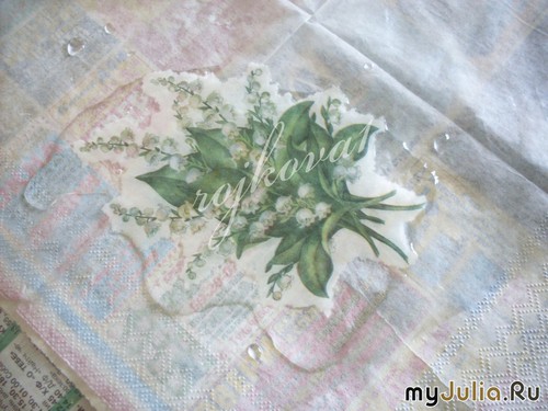 Доску покрываем белой акриловой краской. У меня акрилатная, объем 1,35 кг (цена в районе 200 руб). Красить удобно мелкопористой губкой. Такая губка с ручкой продается в художественных магазинах. Краску хорошо просушиваем, если понадобится, прокрашиваем еще раз. После высыхания, если есть неровности, поверхность можно пошкурить мелкой наждачной бумагой. Из салфетки вырезаем рисунок по контуру или вырываем с небольшим припуском. Вырезать лучше, если рисунок крупный и фон готового изделия будет отличаться от фона салфетки. Убираем нижние белые слои, оставляем только один верхний. Располагаем рисунок на поверхности, как будет выглядеть в итоге. Салфетка очень тонкая и если рисунок большой, его лучше переносить с помощью пленки "методом файла". Рисунок кладем "лицом" вниз на плотную пленку, наливаем сверху воду. В воде легко расправить салфетку. От клея салфетка морщится и тянется, а так её легко будет наклеить. Сливаем аккуратно воду и накладываем пленку на поверхность. Поверх пленки проводим пальцами в разных направлениях, чтобы вышли пузырьки воздуха. Теперь можно снять пленку. Мелкие фрагменты сразу наклеиваем на доску. Клей ПВА разводим водой 50/50. Я клеила пальцем, так чувствуется нажим и складочки. Палец окунаем в клей и промазываем рисунок, разглаживая складки. Клея можно не жалеть, потом лучше промокнуть салфеткой. Хорошо просушиваем доску, можно ускорить феном. Покрываем акриловым лаком. На фото акриловый лак для саун полуматовый, объем 1 литр (цена в районе 145 руб.). Если потом что-то пойдет не так, например, фон неудачно подобрали или чтобы салфетку краской случайно не замарать, слой лака предохранит и можно будет аккуратно смыть. Одного слоя достаточно. Хорошо просушиваем. Подбираем фон, смешиваем краски, если надо. Губкой наносим немного краски, сглаживаем фон салфетки. Прокрашиваем торцы доски. Когда краска высохнет, доску покрываем несколькими слоями лака. В промежутках шкурим неровности, доска получится гладкая. В итоге еще один комплект