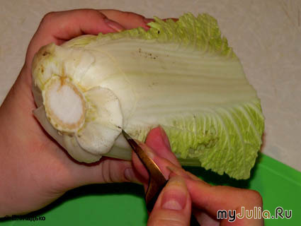 Это просто! Вам потребуются: - кочан пекинской капусты; - длинный нож; - тайский нож. На самом деле, можно обойтись и обычным ножом. Но со специальными, сами понимаете, легче
