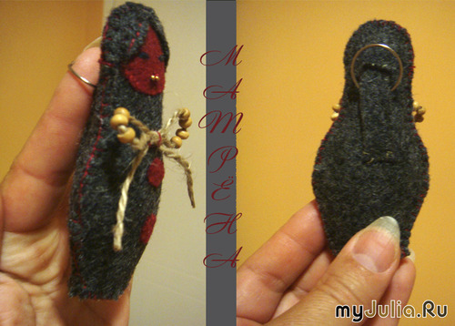 В полку моих мини; брошей и брелоков - прибыло!Сшилась Матрёна. На спинке у неё есть петелька, которую я пришила с умыслом - с её помощью можно цеплять Матрёну к ремню, в качестве нарядного аксессуара. Либо можно использовать в качестве брелока... Внутри Матрёны маленький камушек с берега Средиземного моря, который я зашила для утяжеления и возможности ставить Матрёну на горизонтальную поверхность. Теперь она в окружении своих "собратьев по классу" - потенциальных мини-презентиков, которые ждут своих новых хозяев. Рейтинг: +19 Отправить другуСсылка и анонс этого материала будут отправлены вашему другу по электронной почте. |