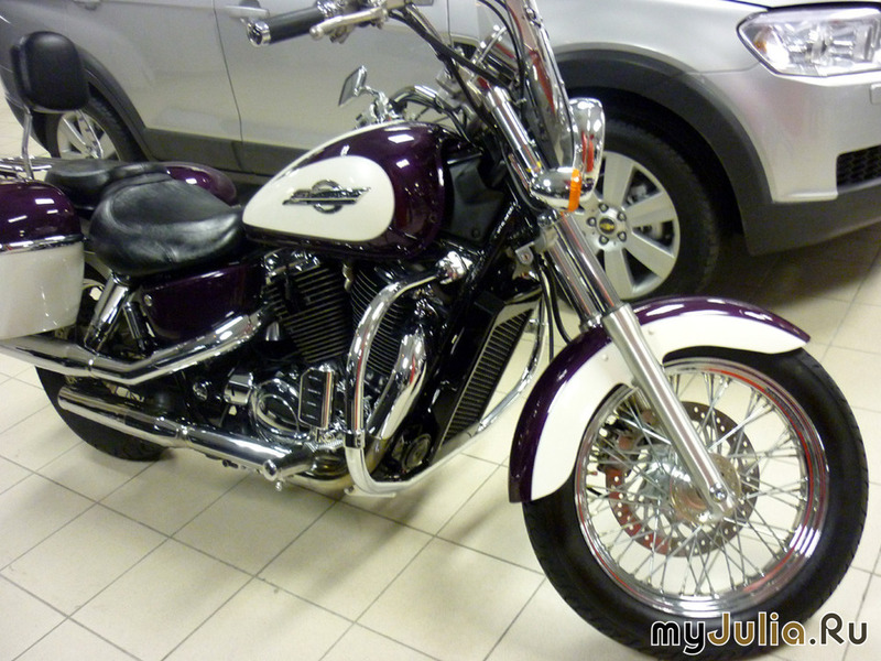 Плохо видно марку. Но похож на Honda Shadow круизёр. Хороший байк