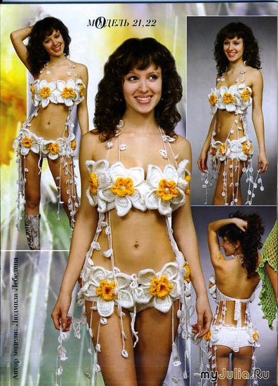 Мне вот нравится как Иринка купальник вязаньем отделала (у себя в альбоме)..буду просить инструктаж...потому что просто в вязанном купальнике боюсь...не потому что вредно а потому что если искупаться всё таки придётся придётся, не растянулся бы от того что намок,а то так и все прелести растерять не долго на радость пляжному народу