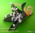Весна!!!!!Ура!!!!! Наступила долгожданная весна!!! По сему поводу сделала я ландыши из шёлка!!! Стоят у меня на подоконнике, дожидаются соего покупателя, радуют меня и моё семейство!! Рейтинг: +4 Отправить другуСсылка и анонс этого материала будут отправлены вашему другу по электронной почте. |