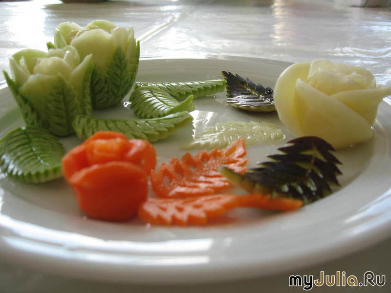 Розочки из кабачков-цукини подглядела на видеоролике в инете. Композиции не делала, просто вырезала разные листики. Другая роза из сырой картошки. Вообще, очень люблю листики, как в вязании, так и в карвинге. Рейтинг: +27 Отправить другуСсылка и анонс этого материала будут отправлены вашему другу по электронной почте. |