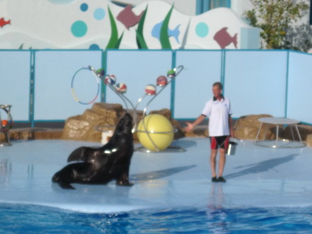 Пока МИД не пускал россиян в Египет, в Хургаде произошли некоторые изменения. Ну, то, что дорогу во многих местах отремонтировали, думаю, никого не интересуют – туристы же свои тойоты не тащат в самолетах. Проведение субботников тоже вряд ли кого-то удивит – для России, думаю, это обычное дело, хотя для Беларуси еще более обычное. А вот настоящим событием можно назвать открытие дельфинария. Поэтому, вернувшись из Каира, мы отправились на ближайшее шоу. Вашему вниманию – фотографии, сделанные моей скромной мыльницей и ни на что не претендующие. ))