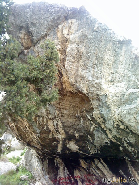 А то, что люди не умеют это ценить - это вообще вандализм. Ты знаешь, там таких надписей много. Такое впечатление, что каждый "вася" из своего мухо...ранска просто считал долгом притащить с собой банку краски и расписать все окрестные камни и скалы, нагадить во все места, не исключая даже дольмены... Вот интересно, на кладбище, на могиле своих родственников, они такое сделали бы?..