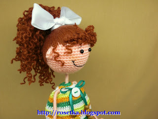 Как вязать Промокашку. У этой куклы всего лишь три вязанных части тела – голова, туловище и ступни. Для того чтобы их связать нам понадобится крючок №1,75 и пряжа телесного цвета подходящей по толщине для крючка и совсем немного цветной пряжи для туфелек. Мои Промокашки связаны пряжей Magic Baby, 100% акрил,50г/185м. Условные обозначения. х – столбик без накида (Сбн) Сс – соединительный столбик V – в одну петлю провязать 2Сбн А - 2Сбн провязать вместе Как читать описание. Например «1р.6х =6Сбн» - в первом ряду провязать 6 столбиков без накида. В итоге, в провязанном ряду должно получиться 6 столбиков без накида (или шесть петель сверху по косичке). Или «2х,v...» - вяжем в таком порядке: 2 Сбн, прибавление (2Сбн в следующую петлю), прибавление и т.д. Все детали вяжутся по спирали. Первый ряд вяжется в кольцо амигуруми. Голова. 1р. 6х в кольцо амигуруми.=6Сбн 2р. 6V =12Сбн 3р. 6 раз(V,х) = 18Сбн 4р. 6 раз(2х,V) = 24Сбн 5р. 6 раз(V,3х) = 30Сбн 6р. 2х, V, 5раз(4х,V), 2х = 36Сбн 7р. 4х,V, 5 раза(5х,V),х = 42 Сбн 8р. 42х = 42 Сбн 9р. 6 раз(V,6х) = 48Сбн 10-18р. 48х=48Сбн 19р. 6 раз(А,6х) = 42Сбн 20р. 42х=42Сбн 21р. 3х,А, 5 раз(5х,А),2х = 36Сбн 22р. 36х=36Сбн 23р. 6 раз(А,4х) = 30Сбн 24р. 2х,А, 5 раз(3х,А),х = 24Сбн 25р. 6 раз(А,2х) = 18Сбн Наполнить деталь. 26р. 6 раз(А, х) = 12Сбн 27р. 6 А= 6Сбн. Нить отрезать, оставив кончик длинной около 40см.