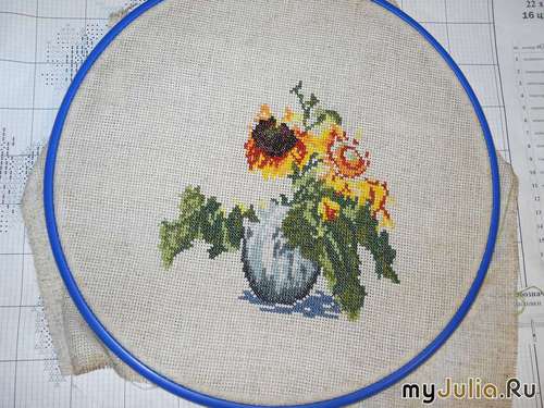 Наконец, набор пришел мне по почте. Получив его, неслась домой со всех ног, предвкушая удовольствие изготовления этой чудесной картиночки, которая украсит комнату своими яркими и веселыми цветами. Канву в пяльцы, схему изучила, нитки рассмотрела и за работу. Как было радостно, когда показался первый цветочек. Честно говоря, приходила с работы и за вышивку, даже телевизор не хотелось смотреть и в интернете сидеть. Вышивала 2 недели и вчера, наконец, закончила. Рамочку подобрала под цвет подсолнушков золотистую. Знаете, на самом деле в комнате светлее и веселее от этой вышивки. Рейтинг: +27 Отправить другуСсылка и анонс этого материала будут отправлены вашему другу по электронной почте. |