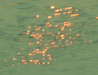 Солнце тоже любит рисовать по воде. Очень загадочные картинки получаются – простор для воображения! Тут и охотничьи собаки, и рыбки, и даже портрет самого Солнышка!