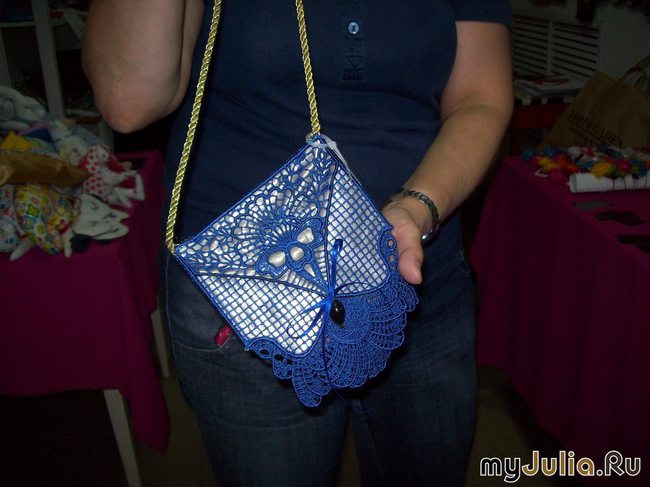 Мы встретились с Ирой на улице. Вот какая сумочка у ней на плече: