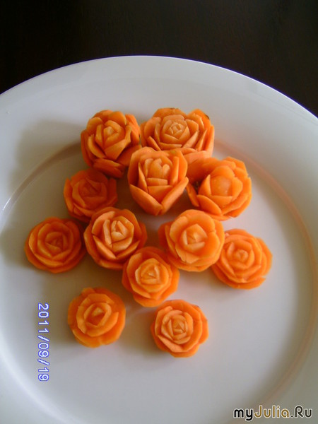 Делаю давно простые украшения из овощей. "Серьёзного" из карвинга еще не вырезала. Надо решиться?! Недавно дешевая морковь продавалась. 3 кг - 90 центов. С нее и решилась на "серьезное". На картошечке легче учиться, но дешевая она будет только на этой неделе. Просмотрела МК и видеоуроки и начала... Вроде гляну, все в порядке, а выходит ерунда. В общем, крутила я ее и так, и этак.... Ну никак! Снова просматриваю МК... и за нож. Что-то начало получаться. Самое главное: я перестала бояться резать морковь. Теперь время найти и вперед!!!! Тяжело в учении - легко в бою! Без морковки – спору нет, Бледным выглядит обед, Ведь морковь всегда была Украшением стола. Сегодня показываю вам то, что натворила: И как всегда... моя помощница со мной (так и норовила тот цветочек съесть, который наиболее получился у меня) Подарок сестре на день рождения. Последние мои работы: А это фото подходит к сл. словам: Знаешь, вот так показываешь-показываешь, особого отклика как-то не видно, а потом вдруг - раз! - и оказывается, что люди потихоньку что-то режут Спасибо за МК!!! Рейтинг: +16 Отправить другуСсылка и анонс этого материала будут отправлены вашему другу по электронной почте. Последние читатели: |