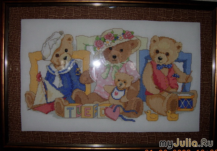 Вышивать крестиком я научилась давно, но серьезно увлеклась этим занятием два года назад, после рождения дочки. Времени катастрофически не хватало, но начав вышивать, остановиться было невозможно. Первая моя картина - "Малыш". Ее я еще потом вышивала в подарок два раза, хотя повторов не люблю. Но увидев восхищенные лица подруг я поняла, что это того стоило."Мишки Тедди" мне всегда нравились и мне хотелось бы вышить всю серию, но не знаю , хватит ли терпения. "Фею" и "Подружек" я вышила в детскую . В среднем на вышивку картины у меня уходит около трех месяцев. Вышиваю сразу несколько картин, поэтому и затягивается на долгое время. Когда закончила вышивать "Синичек" особого восторга не было. Но случайно мне попалась на глаза эта рамочка и когда я вставила работу в рамочку, мои синички ожили и запели . Я их решила подарить подруге, хоть и расставаться было жалко. Теперь я не спешу покупать первую попавшуюся рамку или заказывать то, что есть в наличие в магазине. Жду что-нибудь интересное. Очень хочется купить станок для вышивания, но не знаю какой заказать. Может кто-нибудь поделится своим опытом в использовании или советом. Если заинтересовались вышивкой, могу поделиться схемами. Рейтинг: +14 Отправить другуСсылка и анонс этого материала будут отправлены вашему другу по электронной почте. |