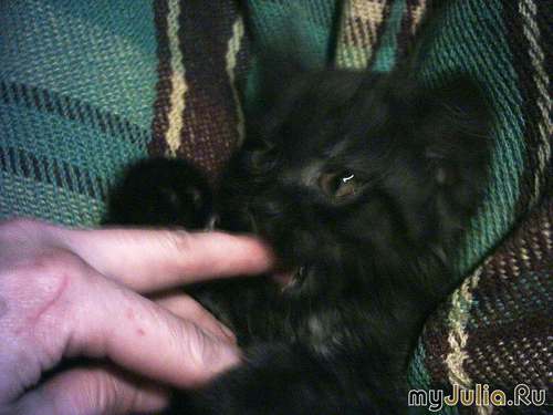 В первый день он был обескураженный и немного напуганный... На второй день уже осмелел и прогулялся во дворе... А вчера уже начал мне мешать работать... Такой шустрый и игривый..., никак не может усидеть на одном месте..., гоняет по всему дому, а когда устанет, та спит на руках у меня или у мужа...