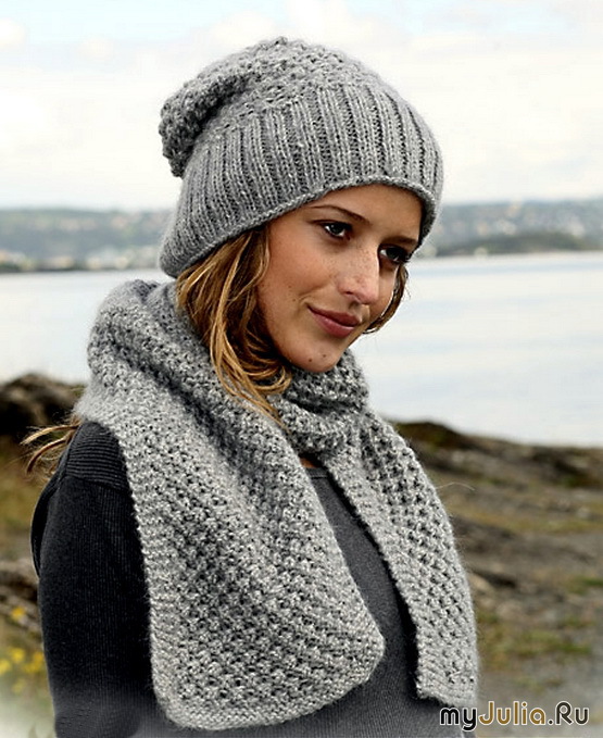 ШапкаОкружность головы: 52/54 - 56/58 см Пряжа: Drops Alpaca (100 % альпака, 50 г = 50 м) 100 г для всех размеров светло-серый и: Drops Kid silk (75% мохер Super Kid, 25 % шелк; 25 г = 200 м) 25 г для всех размеров серый Круговые спицы 4 и 5,5 мм (40 см) Плотность вязания: 16 п. узором «шиповник» в 2 нити Alpaca и 1 нить Kid silk = ширина 10 см Шарф Размеры: ок. 25 см х 140 см Пряжа: Drops Alpaca (100 % альпака, 50 г = 50 м) 200 г для всех размеров светло-серый и: Drops Kid silk (75% мохер Super Kid, 25 % шелк; 25 г = 200 м) 50 г для всех размеров серый Узор «шиповник»: см. схему М. 1. На схеме показаны только лицевые ряды. Платочная вязка по кругу: 1 р. лицевыми, 1 р. изнаночными.