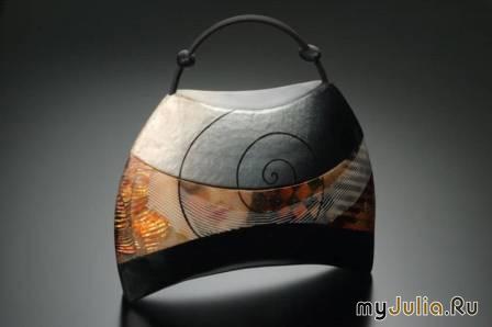 Креативные сумки от Kathleen Dustin - это самый настоящий эксклюзив. Дело в том, что каждую собственную сумку Кэтлин мастерит вручную из полимерной глины. После того, как глина подсыхает, она приобретает необыкновенную прочность и устойчивость к деформации. В зависимости от концепции, каждая сумка украшается оригинальной аппликацией, резьбой или рисунком. Податливость полимерной глины позволяет автору этих сумок делать их абсолютно любой формы: в форме цветка, камня, сердца и т.д. Такие прекрасные креативные сумки достойны называться произведениями искусства!