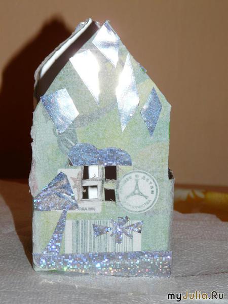 Подсвечник из бросового материала "Заснеженный домик"