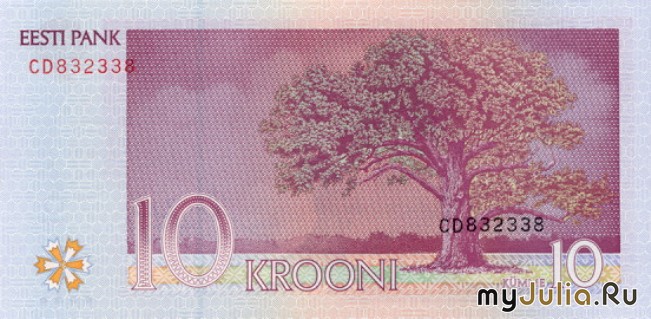 точно!На банкноте 10 эстонских крон изображен дуб. Крону этого дуба на фоне характерного для банкнот штрихового рисунка вы и видите. Можно сказать, что это крона на кроне))))
