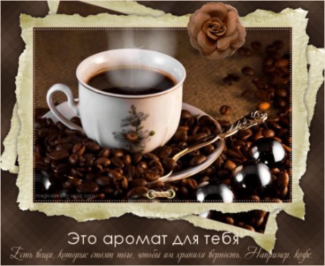 Вот так экспромтом, а как по-другому? Мысли ведь, мысль она тут и вот ее нет, если не запишешь, а тут другая и не важно какая она, а вот сейчас ОНА КОФЕЙНАЯ ![]() Чувствуете аромат? И я чувствую потому, что открыла новую пачку кофейных зерен, беру полную ладошку, сейчас молоть буду. Аромат сказочный! ![]() Приятного вам кофепития. А не плохо было бы, друзья мои дорогие вот так и сфотографировать свою утреннюю чашку кофе и поместить в группу! А что, попробуем? Жду с нетерпение!!!