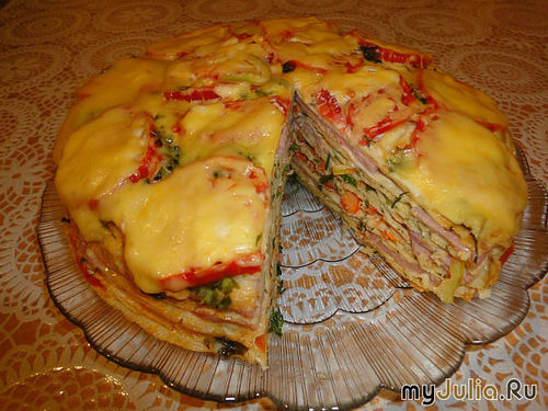 БЛИННЫЙ ТОРТИК С ВЕТЧИНОЙ И СЫРОМ![]() ![]() блины -15-20 шт., майонез, чеснок, ветчина, помидоры порезанные кружочками, болгарский перец порезанный кольцами, мелко рубленая зелень, сыр. Майонез смешиваем с чесноком, этим соусом надо смазывать каждый блин. На дно сковороды или противня кладем бумагу для выпекания. На нее кладем 2-3 блина, смазываем майонезом с чесноком, затем слой ветчины, блин с майонезом, зелень, блин с майонезом, слой помидор, блин, зелень, блин, слой болгарского перца, блин, зелень, блин, слой ветчины и так 2-3 раза. Сверху кладем блин, смазанный майонезом, кладем помидоры кружочками и в духовку на 25-30 минут при температуре 180 градусов. За 5 минут до готовности тортик достаем, посыпаем тертым сыром и снова в духовку. Ну очень вкусно! Попробуйте! Приятного аппетита!!! Автор Ольга Гришина Рейтинг: +3 Отправить другуСсылка и анонс этого материала будут отправлены вашему другу по электронной почте. |