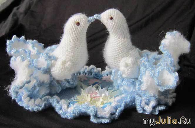 Это просто запись в дневник) описание я не делала, вязала на заданную тему.Свадебные голуби, длина композиции 20см высота 13см.Белая пряжа - мохер 50%, голубая- акрил 100%, бисер -рубка прозрачная,гранёная (поблёскивает),ленточки атласные ,бисер. Рейтинг: +13 Отправить другуСсылка и анонс этого материала будут отправлены вашему другу по электронной почте. |