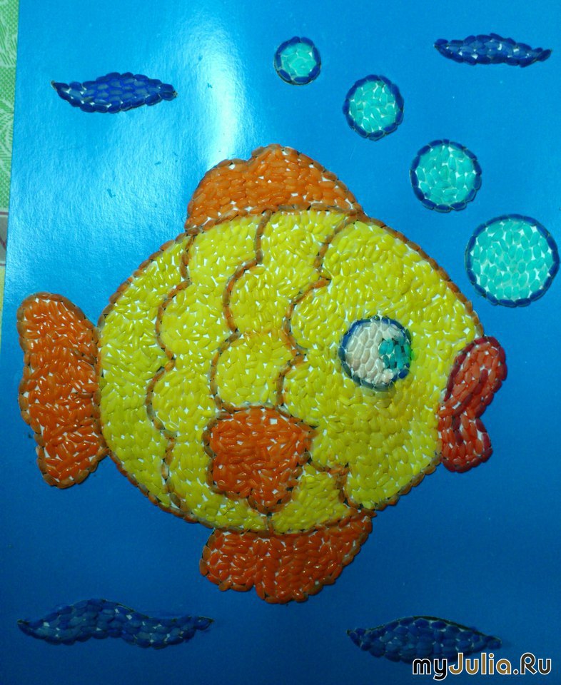 Сестренке в школе задали сделать аппликацию из риса. Немножко помучившись, вот что мы с ней сотворили.