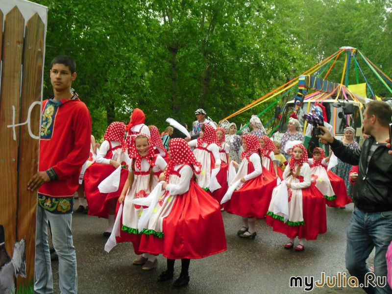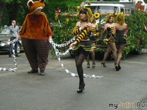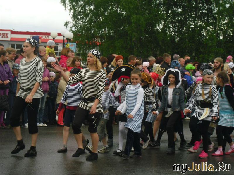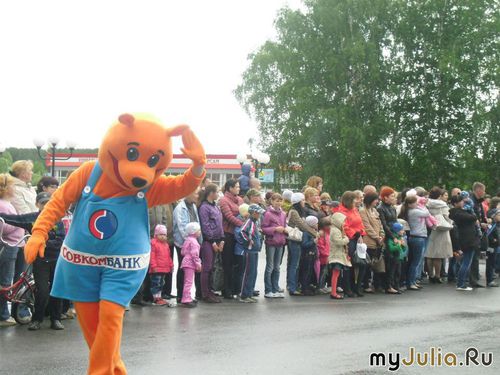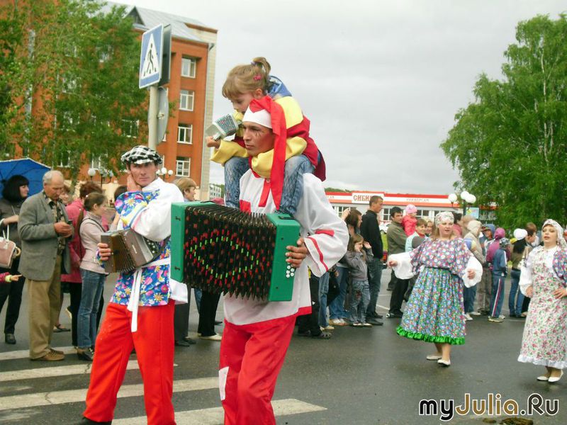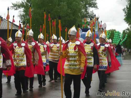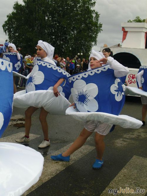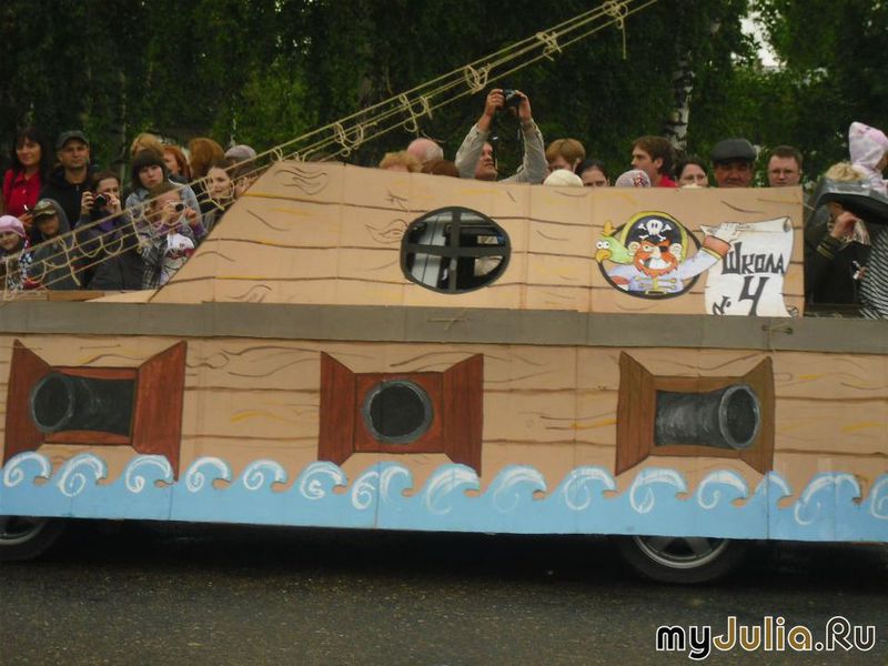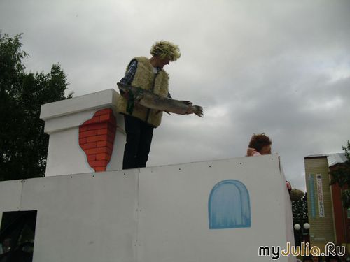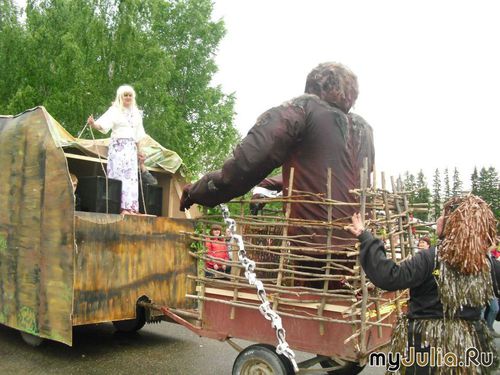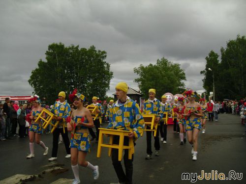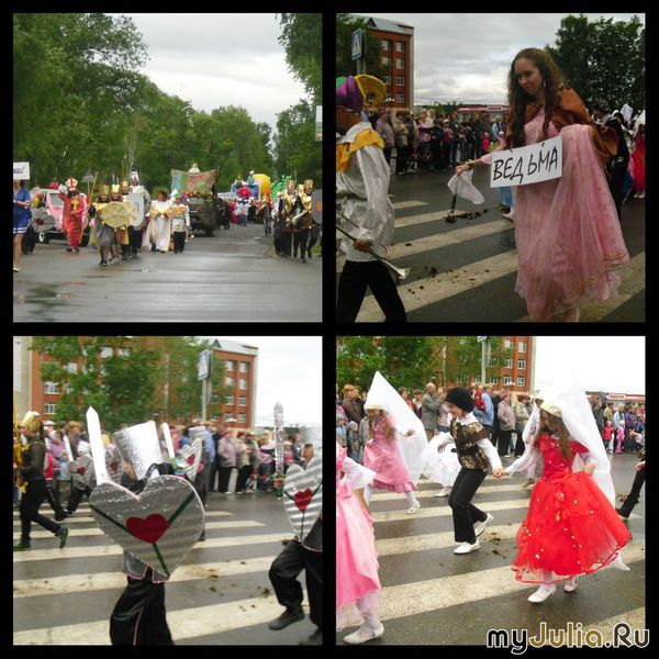 В субботу наш городок праздновал День молодёжи. На стадионе проводились спортивные и концертные программы. "Силовой экстрим" с участием атлетов района. И ежегодное зрелищное мероприятие - карнавал. На улице было всего +10 градусов, моросил надоедливый дождь, несмотря на капризы погоды трибуны на стадионе были заполнены жителями и гостями города. На улицах, по которым двигалось костюмированное шествие, царила сказочная атмосфера. Конечно, участники замёрзли, но чувствовался их боевой дух и задор. У каждой колонны было своё музыкальное сопровождение, своё театрализованное шоу. Доченьку с подружками тоже приглашали принять участие. Но они не захотели быть папуасами, думали, что полураздетыми надо. Потом я уже радовалась, что Саша не согласилась, т.к. переохлаждаться нам сейчас совсем не надо. Колонну открывала молодёжь на колёсах. Пиратский корабль. Почтальон Печкин от почты России Театральная студия "Зазеркалье" Загадочный Кинг-конг с папуасами, он шевелил головой и руками))) Колонна Городского Дома Культуры заняла первое место. Морская тематика. Очаровательные медузы Второе место заняла самая многочисленная колонна. И на мой взгляд самая интересная! Сельский Дом Культуры "Лесопильщик" На этой платформе звучала зажигательная "живая музыка" Молодёжь была всё время в движении, и здесь увидела свою крестницу Кристиночку))) В этой колонне шла и моя племянница))) Несмотря на то, что вся продрогла, улыбалась))) Ладья раскачивалась, а в ней была красавица Очень красивые яркие Чашки с самоваром) Гвоздём программы конечно была русская печка, из которой даже шёл дымок)) а у Емели была настоящая щука!