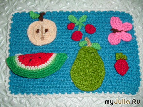 У старшей дочи в детском саду будет новый набор малышей. Для ребятишек связала развивающую аппликацию. Это фон, на него пришила липкую ленту, чтобы держались фигурки. Потом ещё обвязала белой пряжей. Вот такой пейзаж Насекомые Кто здесь лишний? Птицы Что лишнее? Фрукты-ягоды Что-то лишнее прилетело?