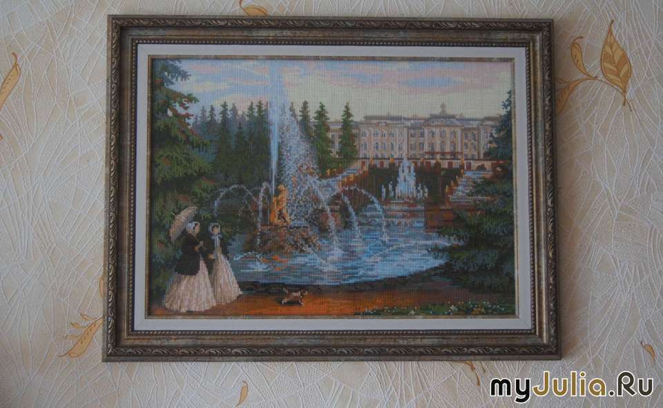 Забрала из багетной мастерской наши с мужем работы. Петергофу поменяла раму. Лебедей и парусник, которых мы вышили недавно, одела в багет. Ну и конечно хвастаюсь.