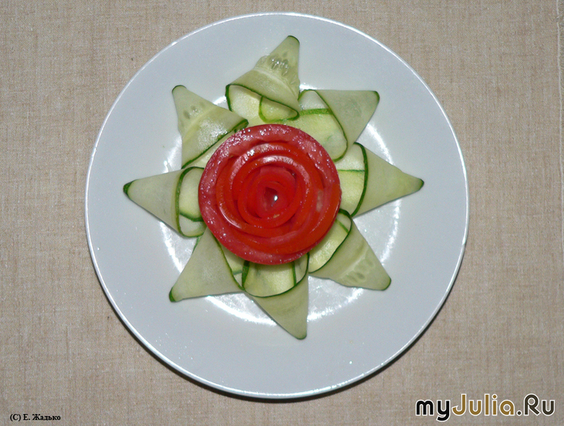 Обратились ко мне с другого женского сайта с просьбой сделать для них мастер-класс по украшению из овощей. Всё равно, из каких, всё равно что украшать. Я так прикинула: это у нас уже народ более-менее продвинутый, представление имеет, даже инструменты у некоторых есть. А что можно предложить совсем новичкам? Придумалась вот такая штука: роза в окружении листиков из огурца. МК по розе у нас был: http://www.myjulia.ru/post/249951/, я сделала 2-й вариант. Скрутить конусы из пластушек огурца тоже проблем не представляет, а нарезаем их обычной овощечисткой, которая в каждом доме есть. И вот так примерно это должно выглядеть: И вид чуть сбоку: Если кому-то придется украшать большое мероприятие, вроде дня рождения или свадьбы, можно взять на вооружение - красиво и быстро, на всё про всё уходит 2-3 минуты... Рейтинг: +15 Отправить другуСсылка и анонс этого материала будут отправлены вашему другу по электронной почте. |