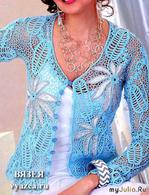 21. Кофта крючком в технике сцепного кружева с использованием ткани: