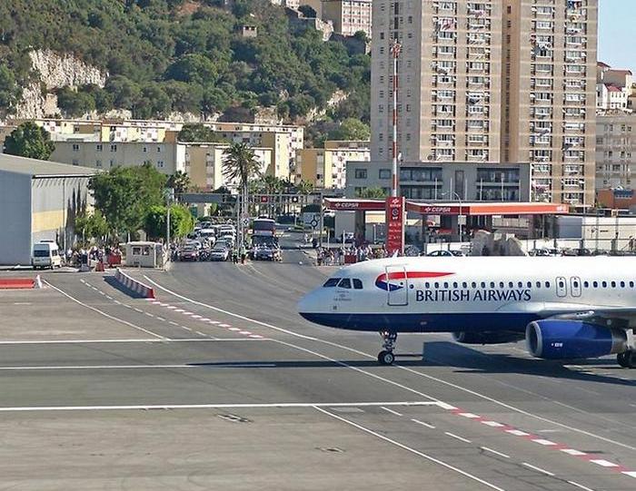 Гибралтарский гражданский аэропорт North Front, принадлежащий Великобритании, расположен на полуострове 6.8 км.кв. Из-за нехватки площадей единственная взлетно-посадочная полоса аэропорта проложена так, что пересекает самое оживленное шоссе - Уинстон Черчилль авеню. Это единственный в своём роде аэропорт. 2. Стековая транспортная развязка: машины и метро
