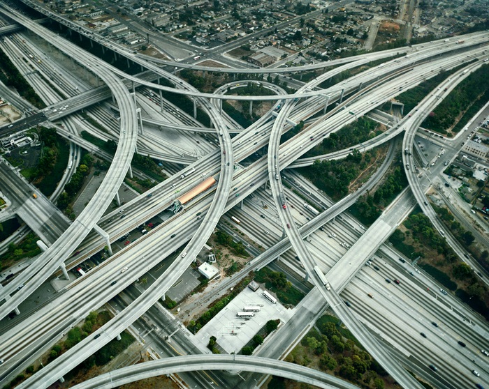 Развязка имени судьи Гарри Преджерсона – стековая транспортная развязка в Лос-Анжделесе. Она состоит из дорог для пассажирского транспорта, железнодорожных путей метрополитена и транзитной дороги, которые образуют впечатляющую конструкцию. Дорогу открыли в 1993 году и назвали в честь человека, который долгое время занимал пост федерального судьи и был председателем в суде по делу строительства автомагистрали. 3. Перекресток Спагетти
