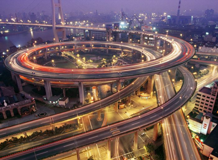 Мост Нанпу через реку Хуангпу является одним из главных мостов в Шанхае. Общая длина моста - 8346 метров, 31,36 метра и высота 46 метров. Через этот мост ежедневно в среднем проезжает около 120 000 автомобилей. 6. Петля Хигаси Осака