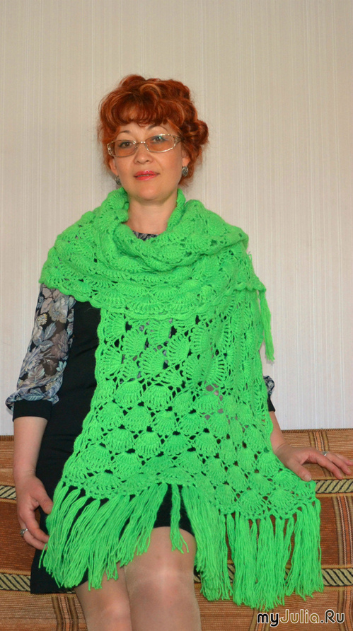 Хочу показать свой подарок для замечательного педагога по фортепиано и очаровательной женщины. Она открыла дверцу в волшебный мир музыки моей доченьке. Конечно сначала узнала любимый цвет преподавателя. Пряжа ANGORA RAM Вязала крючком по этой схеме. Сейчас не могу сказать сколько набирала воздушных петель на начальную цепочку. Связала 6 рядов веерами . Присоединила нить к первому ряду начала вязания и так же связала 6 мотивов. Ширина получилась из 12 рядов. В процессе вязания решила, что надо добавить длину, поэтому с одного и другого края подвязала по 5 рядов. Присоединила кисти. Длина палантина получилась 219см. По бокам провязала 6 в.п., ст.без накида. Затем петли обвязала - 8 полу столбиков с накидом. Получился волнистый край. Демонстрирую для Вас Была рада приятно удивить нашего любимого педагога. И счастлива, что О.Л. понравился палантин. Всем желаю удачи, будьте счастливы!