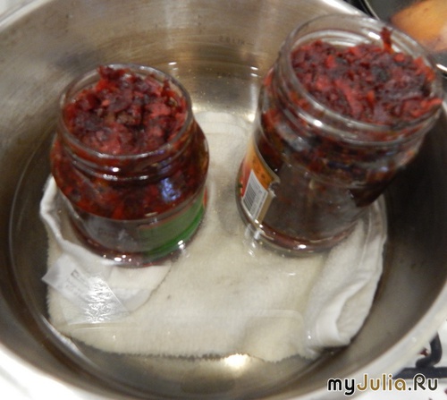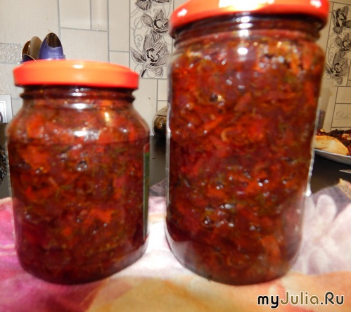 "Минимум потраченного времени, максимум вкусное блюдо" - мой девиз.Поэтому лучше потрачу немного свободного времени, чтобы при его отсутствии не метаться по кухне с мыслями, чтобы этакое быстренько приготовить к приходу мужа. Поэтому в качестве палочки-выручалочки решила запастить овощной зажаркой для борща на зиму. Зимой останется только добавить кусочек мяса и порезанного картофеля в супчик и все готово. Ингредиенты для зажарки: 1. Свекла -2 шт. 2. Морковь -3 шт. 3. Помидоры -5-6 шт. 4. Луковица -1 крупная шт. 5. Зелень петрушки и укропа- по вкусу 6. Соль-1,5 ч.ложка. 7. Сахар - 1ст.ложка. 8. Уксус - 3 ст.ложка. 9. Красный молотый перец. 10. Растительное масло для обжарки. Способ приготовления. 1.Оовощи помыть, свеклу, морковь натереть на терке. Лук, помидоры, зелень порезать. 2. Поставить овощи тушить в сковороде, добавив сахар, соль, специи, залив чуть водой. Тушить 25 минут. 3. Добавить в зажарку порубленную зелень, обжарить на растительном масле. 4. В самом конце в зажарку добавить уксус и подержать на огне еще 5 минут. 5. Разложить в простерилизованные банки, прикрыть прокипяченными крышками и поставить на стерилизацию на 20 минут. 6. Потом банки закрыть и оставить остывать в теплом месте. 7. После остывания хранить в прохладном месте. Зимой просто спасение для занятых людей. Рейтинг: +8 Отправить другуСсылка и анонс этого материала будут отправлены вашему другу по электронной почте. Последние читатели: |