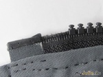 Если пропало пара зубчиков, можно конечно выпарывать всю молнию — или не выпарывать, а прямо так и вшить новую. А можно обойтись без таких трат:И просто интересно было: неужто нельзя заменить собственно зубчики? В металлических молниях это довольно просто. Приходилось также восстанавливать спиральные застежки(ткань, а не саму спираль). А вот с «тракторными» опыта не было, и, по-началу, не очень понятно было с какой стороны подойти. Гугл также не предложил вариантов замены зубьев, кроме вставки «протеза» из трубки, выполняющего лишь функцию распорки между зубчиками, не дающей замку расходиться. Но у меня не один, а три зуба отсутствовали, да еще непосредственно перед разъемом. Как оказалось — ничего сложного в таком ремонте нет. Используем небольшую молнию-донор (правда, нужного размера зубьев так и не нашли, взяли подходящие по высоте и ширине, но по толщине бОльшие на 0.5мм.) Выковыряли зубчики из «донора» — они там слегка приклеены/приварены, но снимаются достаточно легко.