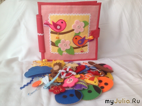 Такую нарядную книжечку сшила для девочки. Книжка содержит разные игры и задания. Много съёмных деталек, которые крепятся на кнопки , пуговицы, магнитики и липучку. Есть лабиринт, рыбалка. Знакомство со счётом и цветом.Приятного просмотраВсего получилось 48 съёмных деталей Рейтинг: +8 Отправить другуСсылка и анонс этого материала будут отправлены вашему другу по электронной почте. |