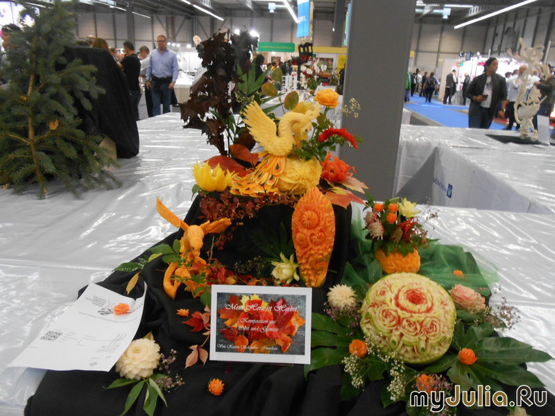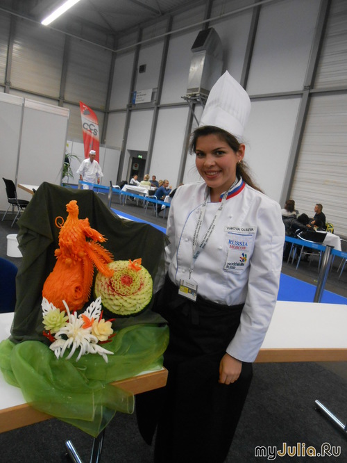 Добрый день всем. В октябре этого года в городе Эрфурт(Германия) проходила всемирная олимпиада поваров- IKA/Olympiade der Köche 2016 . 22.10.16-25.10.16 4 года назад мы рассказывали в группе о олимпиаде 2012 года. http://www.myjulia.ru/post/562341/ K сожалению в этом годы небыли опубликованы списки участников...... поэтому только на месте узнали,кто принимает участие из ""наших""... я пишу о карвингистах-Олеся Юрова,Екатерина Овчинникова, Галина Фалетра и Katrin Schamber(Ивенская). В различных соц. сетях многие могли любоваться работами мастеров на олимпиаде. Сегодня я рассказу и покажу в фотографиях олимпиаду "моими глазами". Каждый день я ездила в Эрфурт.... мой день длился 12 часов... из них только 5-6 часов на олимпиаде... остальное дорога. Соревнования по карвингу онлайн полуфинал проходил 3 дня...длилось 3 часа ( кто вырезает ...знает ,что такое 3 часа для работы) Только те, кто набрал 80 балов и более ( это золото и серебро) проходили в финал....... кто набирал 70-79.99 балов получали бронзу. В 2012 году были др. правила.. В этом году каждый день награждали участников в полуфинале. 25.10 проходил финал. Галина,Олеся и Екатерина принимали участия в соревнованиях ...онлайн. В финал вышла только Галина. Также каждый из "наших"показал дом. работу Галина- полуфинал- серебро Олеся -полуфинал- диплом Екатерина-полуфинал- диплом Галина- финал - серебро Галина- дом. работа-серебро Олеся- дом. работа-серебро Екатерина-дом.работа-бронза Katrin-дом.работа-диплом Katrin-дом.работа- сахарные цветы- бронза Поздравляю всех ,кто принимал участие в олимпиаде... с медалями и дипломами... это большой труд... большие финансовые расходы... увы.... спонсоров у многих просто нет. ... "Наши " показывали работы и в др. категориях...сахар, шоколад, масло, тесто и т.д. были участники из России, Белоруссии, Украины, Литвы, Исландии и др. стран. Работы были подписаны только фамилией... из какой страны не известно ... можно было только догадываться ...... Все мои фото с олимпиады я показываю в моей группе в одной из русскоязычных соц. сетей.... если кому либо интересно посмотреть фото (там не только кавринг) напишите мне ... я скажу вам ...где. Прошу с пониманием отнестись... что не показываю все фото здесь... не ни времени .. ни сил. ВСЕМ ВСЕГО ДОБРОГО!!!!!!!! Рейтинг: +13 Отправить другуСсылка и анонс этого материала будут отправлены вашему другу по электронной почте. |