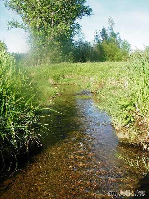 Извилистое русло Верхречки, по дну выложенное камешками и песком, окаймляют травы и цеты