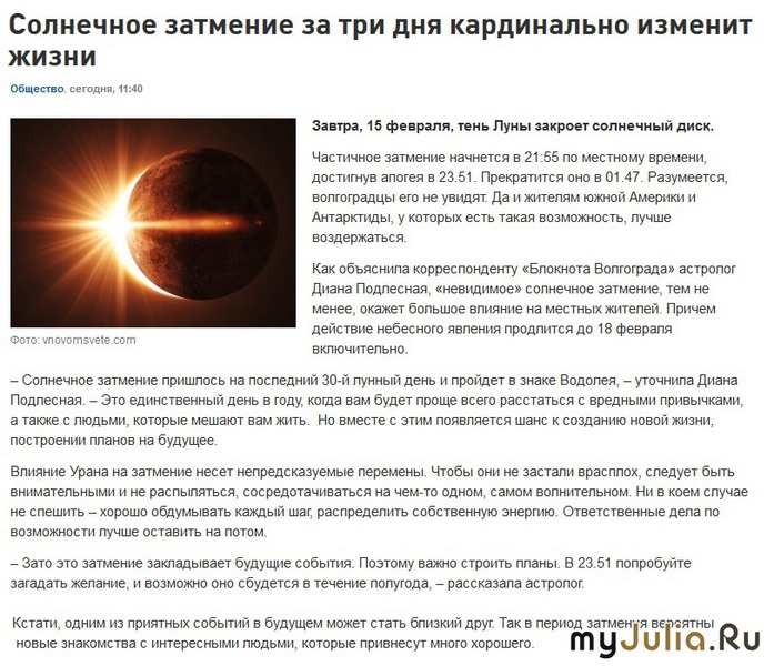 Перепечатка материалов разрешена только с непосредственной ссылкой на http://www.myJulia.ru/