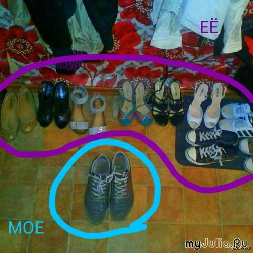 Насчет обуви - тоже все логично. Женщина создает разные образы, ей к разным костюмам разные туфли нужны. Равно как и для разных случаев. К тому же, большинство из них красивые, но неудобные. А есть такие места, куда надо удобные. Но тоже красивые. Мужчина скорее всего предпочтет удобные. Самые удобные. А они всегда одни. Остальные, даже если есть, будут валяться на антресолях