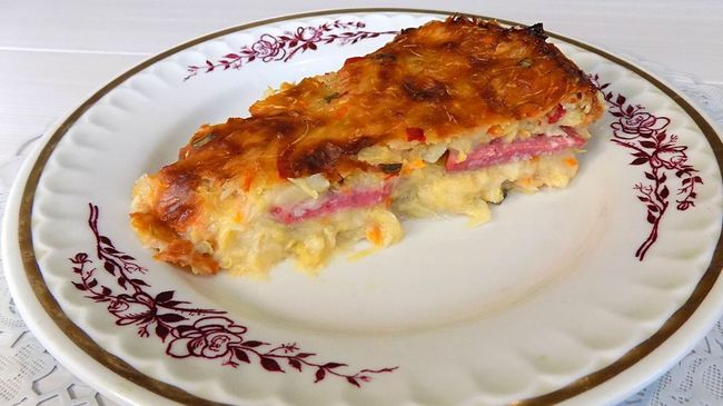 Рецепт овощной запеканки с колбасой
