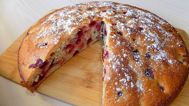 Ингредиенты для ягодного пирога: • 1 стакан кефира (250 мл) • 1 куриное яйцо • 1 стакан сахара • 2 стакана пшеничной муки • 2 ст. л. растительного масла • Щепотка соли • 1 пакетик разрыхлителя для теста (10 гр.) • Ягоды по вашему вкусу (у меня клюква) 1. Перемешаем сахар с яйцом. Добавим щепотку соли,растительное масло и кефир. Хорошо перемешаем эту массу. 2. В муку добавляем разрыхлитель и размешаем. Просеиваем через сито эту муку в миску с кефиром. Хорошо замешаем наше тесто венчиком или миксером. 3. В подготовленное тесто добавляем немного ягод и аккуратно перемешаем все продукты в миске, так чтобы не подавить ягоды. 4. На дно формы выложим пергаментную бумагу, а борта смажем растительным маслом. 5. Выложим тесто в форму для выпечки давая ему равномерно распределиться по форме. 6. Готовим пирог с ягодами примерно 40 минут в разогретой до 180 градусов духовке. 7. Для украшения я готовый пирог посыпаю сахарной пудрой. Рейтинг: +1 Отправить другуСсылка и анонс этого материала будут отправлены вашему другу по электронной почте. Последние читатели: |