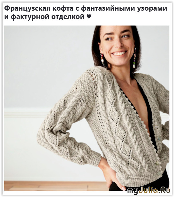 Французская кофта с фантазийными узорами - описание вязания спицами
