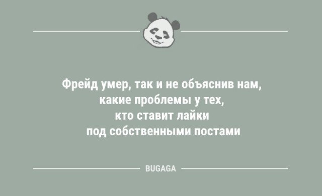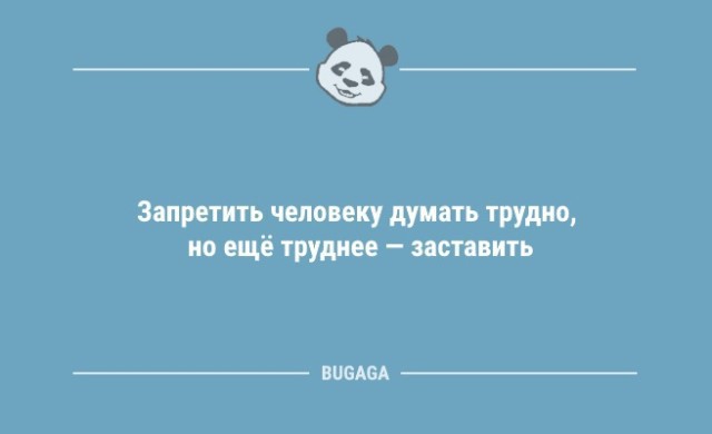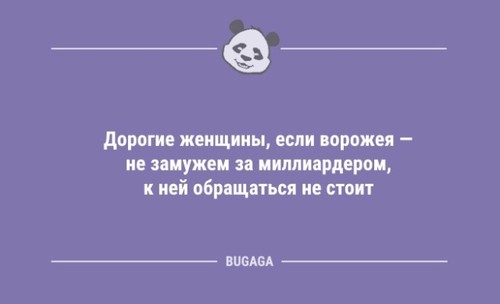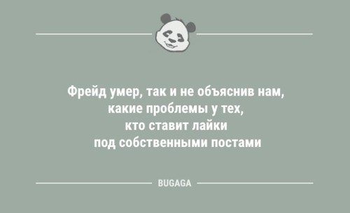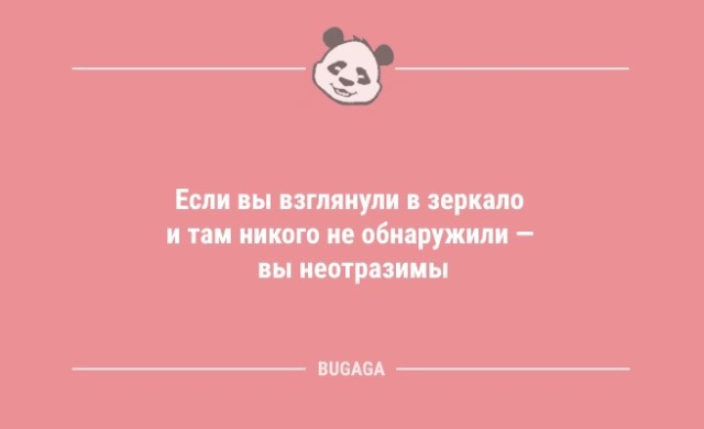 Попонедельничаем? :)![]() Бабушка Оксаны так много знала о внучке, что предпочитала не встречать ее с работы на лавочке у подъезда. Водителя маршрутки похоронили за 50 метров от того места, где он попросил. ![]() Придя домой из школы, Вовочка крикнул: - Я хочу уведомить все заинтересованные стороны, что я, Вовочка, сегодня показал себя перед всем классом полным идиотом, когда на уроке по половому воспитанию я повторил истории про аистов, рассказанные мне некоторыми лицами, проживающими в этой квартире. В отделе кадров. - А у вас есть точно такая же зарплата, но побольше? - К сожалению, нет! - Нет? Будем искать... ![]() - Ты закодировался? - Нет! Представляешь, заплатил уже деньги в кассу, пришел к врачу, а оказалось, что это Мишка, мы в одном дворе выросли! - Ну и что? - После третьей стопки его коньяка желание закодироваться как рукой сняло! После посещения психолога, я смогла вернуть мужа в семью. В семью его родителей. У возраста 40 есть и недостатки, и преимущества. Вблизи не видишь маленькие буквы, зато идиотов видишь издалека. ![]() Взрослый - это когда тебе в дверь стучат свидетели Иеговы, а ты побыстрее спешишь открыть, ведь ты консультант "Орифлейм". А знаете ли вы, что по-настоящему откровенный и честный ребёнок любит не маму с папой, а трубочки с кремом. - Привэт - Как же ты задрал. Через Е пишется - Превэт ![]() Знаете ли вы, что самый популярный комментарий на любом языке, о любом приложении, для любой операционки выглядит так: «ПРИЛОЖЕНИЕ БЫЛО ХОРОШИМ ДО ПОСЛЕДНЕГО ОБНОВЛЕНИЯ» xxx: Эти ДНК тесты тема стремная, я вот тоже сделал это все, и оказалось, что дети от меня, а жена нет... yyy: Слышал много таких историй, когда жена подкидыш. Обычно тесть с тещей подкидывают, чтобы самим не кормить. С работы надо увольняться так, чтобы в эту компанию больше не брали людей с твоим именем. ![]() Читаю: «остатки хорошего вина можно заморозить». Боже мой, какие остатки? Что за бесполезные советы? Моей знакомой гадалка сказала, что на неё свалится куча денег. На следующий день на неё упал банкомат. Любовь делает каждого человека светлее и чище... По крайней мере, заставляет таки мыться, бриться и менять носки! Рейтинг: +1 Отправить другуСсылка и анонс этого материала будут отправлены вашему другу по электронной почте. Последние читатели:![]() Невидимка |