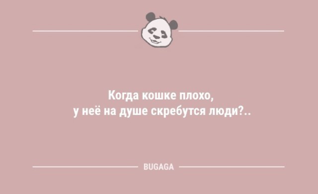 Только в процессе развода осознал, что жена намного больше, чем моя половинка. помирились с тёщей сели кофе пьём у меня из чашки тянет миндалём Сейчас самое главное - это хорошо получаться на фотографиях в соцсетях. Остальное потихоньку стало второстепенным. Когда садятся батарейки, мы не покупаем новые, а вытаскиваем их из более бесполезного устройства. Читаю эти ежедневные новости о том, как простые люди переводят телефонным мошенникам миллионы рублей. Откуда у них такие деньги? У нас в стране какие-то огромные тайные спецвыплаты тупым выдают? Почему я не получаю? В древности люди болели гораздо меньше - практически один раз за жизнь. В новой версии приключений о Шерлоке Холмсе, актеру, озвучивающему вой собаки Баскервилей, подсунули платежку услуг ЖКХ с новыми тарифами. Именно бесплатный совет принимается как критика, а вот платный - как профессиональная помощь. Если удаленную работу совмещать с работой консьержем, то вы получите офис, за который вам еще и заплатят. В Дзержинске задержана учительница русского языка, при попытке заменить вывеску магазина «Обои» на «Оба» Когда умный человек ищет виновных, то сразу же начинает с себя, удаляя из списка кандидатов. Меня последнее время ночами муж стал крепче обнимать, думала любить сильнее стал. Оказалось, мерзнет, паразит! Ну и ладно... Пойду еще одно окно открою, чтобы жить без меня не мог! Чтобы узнать интеллектуальный уровень человека, просто спросите его, какое имя у Шаляпина! После нескольких лет вдовства мужчина женился на сестре своей покойной жены. Свой поступок он объяснил так: - Нельзя, чтобы мужчина в моем возрасте привыкал к новой теще. Небольшой совет. Извиниться перед гостями за то, что дома бардак, гораздо проще, чем сделать дома уборку! Ну и где этот ваш придуманный дьявол, чтобы продать душу и не ходить на работу? – В женщине должна быть загадка. – Хочешь сказать, что во мне нет загадки? – Пойми, одна загадка, а не сборник задач повышенной сложности для олимпиад! Рейтинг: +2 Отправить другуСсылка и анонс этого материала будут отправлены вашему другу по электронной почте. Последние читатели: |