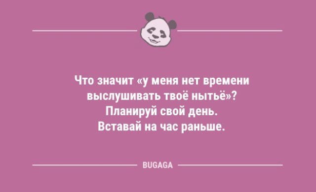 Взрослая жизнь - это когда можешь делать все, что хочешь, но только после того, как сделаешь все, что не хочешь.А после того, как ты сделаешь все, что не хочешь - ты уже ничего не хочешь. Мой сосед лечится абсентом от ковида, водкой с перцем от простуды, коньяком от давления, пивом от камней в почках. Жена от него ушла, заявив, что он слишком зациклен на заботе о своем здоровье. Купил книжку "Этому не научат в автошколе", пришёл домой, лег на диван, открыл титульный лист, там написано "Всё о комнатных растениях"... Ограбление инкассаторов - это не уголовное преступление, а взятие кредита за 5 минут, без справок, залога и поручителей под 0 процентов. Мало кто знает, что дальнобойщики-импотенты доставляют груз на несколько суток раньше... В сложное время живем. Состоятельным людям, чтобы перевести деньги за рубеж, приходится выдавать это за обман телефонными мошенниками. Самоизоляция - это ознакомительный тур на пенсию. Денег нет и заняться нечем. Желание ничего не покупать совпало с возможностью - это ли не гармония! Если вы держитесь за отношения, от которых нет ни пользы, ни удовольствия, значит вам нравятся проблемы. Петрович был опытным жильцом, проживающим на 24 этаже не очень нового дома. Поэтому в постоянно застревающий лифт с собой брал фонарик, отвёртку и пассатижи, еды на 3 дня, 5 литров воды, литр водки, рулон туалетной бумаги и, чем черт не шутит, если повезёт - пачку презервативов. Сколько себе не ври, а сознаваться придётся. Не так страшно искать во сне туалет, как его найти. Если в ходе дискуссии вы заметите, что права всё-таки другая сторона, то скажите - я же об этом и говорю! Вы не только выпутаетесь из ситуации, но и собеседник будет выглядеть идиотом, который не понимает, что ему говорят. Если достаточно долго копаться в вещах, повторяя вполголоса "Ну он же был здесь, ну я же точно помню, ну где же он, ну я же его тут видела", то искомый предмет обязательно найдется. В последнее время очень редко снятся сны. Видимо, так мало сплю, что они не успевают загружаться. Когда человек подходит к другому человеку со словами: "Это, конечно, не моё дело" - то он, как правило, в этом не ошибается. Только наш мужик может поблагодарить жену за вкусные макароны по-флотски и получить за это по уху, потому что это была паста карбонара. Прежде чем лопать пузырьки в упаковочном полиэтилене, запомните - воздух там китайский. Рейтинг: +2 Отправить другуСсылка и анонс этого материала будут отправлены вашему другу по электронной почте. Последние читатели: |