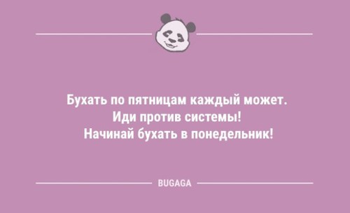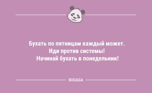 Если изобретут телепорт, я буду опаздывать на телепорт. Сначала люди изобрели оружие и только потом, спустя время, придумали профессию психолога. Отклонений от нормы в этом мире столько, что временами возникает вопрос, не является ли отклонением сама норма. – Дорогая, на ночь… – Это кефирная диета. – Но ты запиваешь кефиром шаурму, шоколадные вафли и торт! – ЭТО КЕФИРНАЯ ДИЕТА!! Трудно победить в аргументированном споре с умным человеком. А с глупым вообще невозможно. Оптимист покупает доллары. Пессимист покупает юани. Реалист покупает консервы. Скоро на книгах, в качестве маркетингового хода, будут использовать надписи типа "не содержит нейросетевого текста", "100% написано человеком". Ищу женщину, родившуюся 29-го февраля, для создания длительных отношений. О себе - выпускник факультета экономики. Факт "90% окружающих - идиоты" дает верный ответ на подавляющее большинство вопросов серии "Ну почему люди так себя ведут?". - Κак взбесить филолога? - ΗΕ ΚΑΚ Чтобы спешить на работу в молодости, там должна ждать тебя красивая девушка. Чтобы спешить на работу в зрелости, там должна ждать тебя бутылочка коньяка. Чтобы спешить на работу в старости, там должен ждать тебя крепкий и спокойный сон. В основном, жена – это не только и не сколько та женщина, которую ты любишь, а та единственная, которая согласилась с тобой жить. На 8 Марта я позвонил маме. И по привычке попросил выслать денег! Не жизнь, а сплошное получение полезного опыта. Как говорят на одесском почтамте... Лучшее письмо - это конверт с деньгами! Хочется какой-то внезапной курьерской доставки цветов или роллов, а не это вот всё... Кто наиболее крупным планом и чаще всех видит куда именно идёт человечество? - Врач проктолог. Рейтинг: +2 Отправить другуСсылка и анонс этого материала будут отправлены вашему другу по электронной почте. Последние читатели: |
